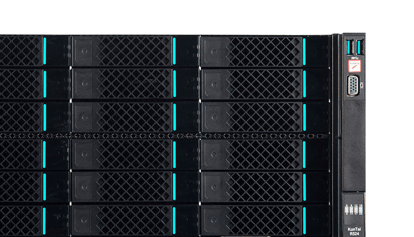 KunTai R524 存储型服务器是大红鹰娱乐数码基于鲲鹏处理器推出的新一代 ARM数据中心服务器。。。主要面向存储业务,,,具有海量存储、、高性能、、、低功耗以及易扩展的特点,,适合为大数据分析、、、软件定义存 储等应用场景的工作负载进行髙效加速。。